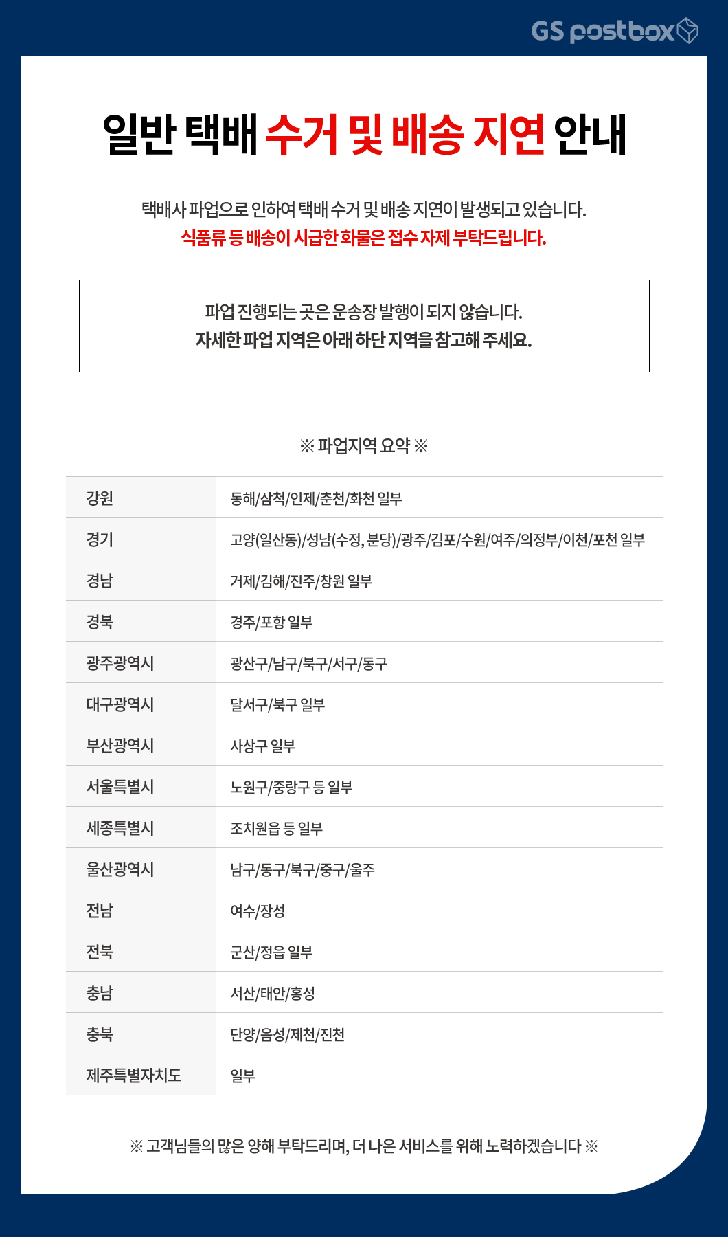※파업영향지역※