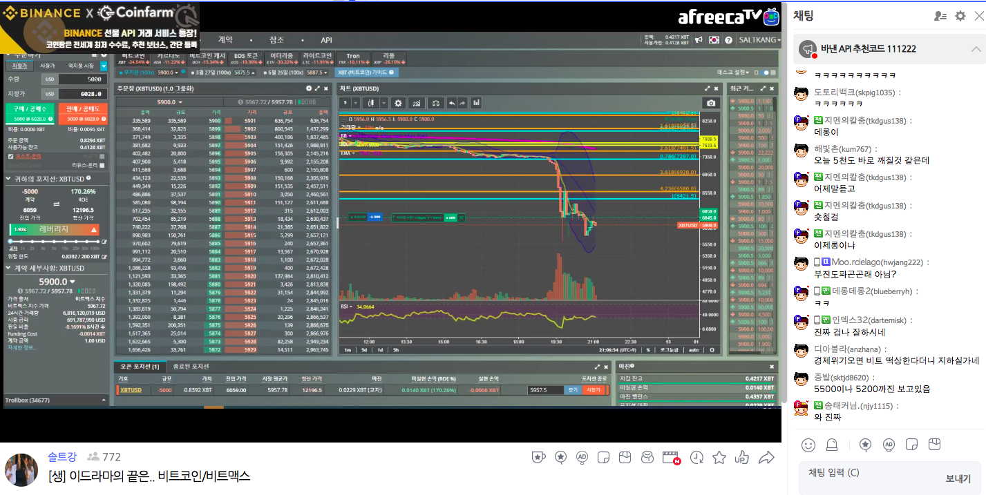 현재 아프리카 tv등 비트코인을 주로 거래하는 스트리머들의